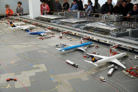 回到微縮景觀世界 (Miniatur Wunderland),這裡在橫跨兩個樓層的廣大展示空間裡以鐵道模型串聯了不同國度、不同地形、不同季節的各式各樣的場景,而燈光也會有日夜循環的明暗變化。模型火車穿越過城市與鄉間,經過音樂會、足球賽和遊樂場等各種休閒活動,也遇上火山爆發和火災等各種災難。這裡有一座寬廣的模型機場,各種飛機在這裡忙碌的滑行和起降,就像真的機場一樣。這裡的模型不但精緻,許多場景裡也設計了會讓人會心一笑的巧思。可惜的是這裡的遊客實在太多,規模也實在太大,所以很難細細欣賞這些製作精巧的迷你模型世界。